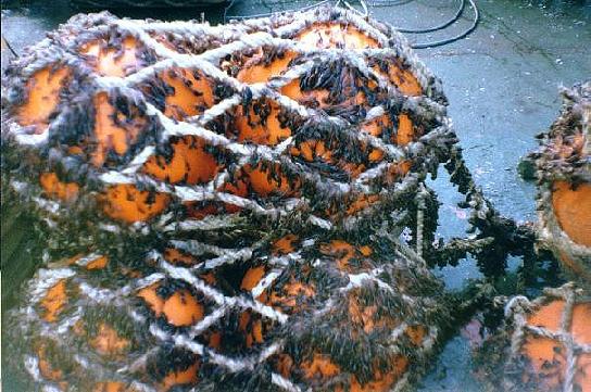 水下錨碇系統回收後浮球上長滿生物的情形。